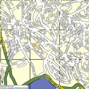 This will bring you to the main Newton Abbot Roundabout. Follow the signs on this roundabout to Torquay. Head down this road until you see signs for Torquay Town centre. When arriving in town centre use this map on the right to find us where arrow is located.
